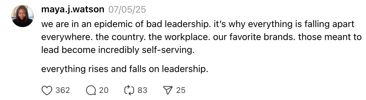 We’re living in a moment where the old scripts no longer work. We are waking up faster than the structures designed to hold them. And one of the most visible breakdowns across all of it is leadership. We are in an epidemic of terrible leadership. We keep placing people in positions of authority who were never trained, equipped, or meant to lead us well. And in a world where work is still done through people, our inability to lead each other with care, clarity, and conviction has real consequences.