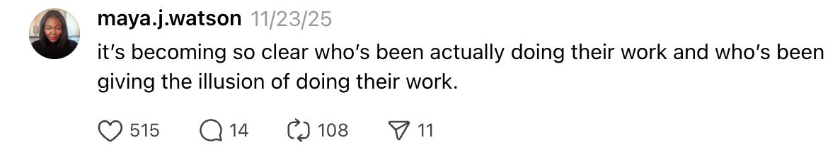 We’re done with polish masquerading as wisdom. We are SO over influencers hiding behind an illusion that bears little resemblance to real life or real work. As we move into 2026, we all have to be way more honest about the cost of what this takes. We have to be willing to really show ourselves actually doing the work.