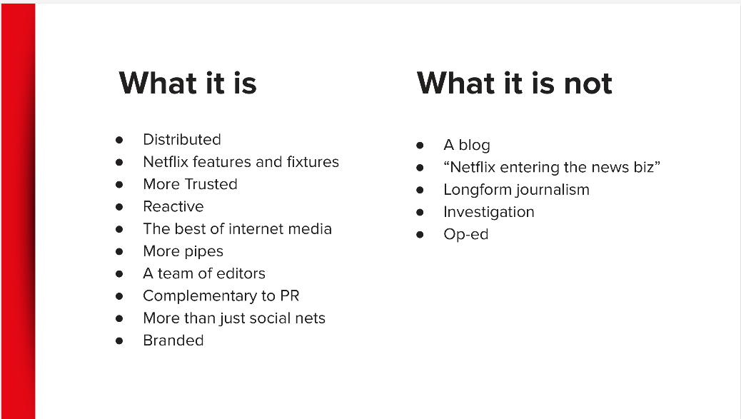 That was the great thing about Netflix — they wanted you to experiment and swing big. the team started jamming. we came up with this idea that gave us all chills. We started executing. everything was going well. And then it showed up.