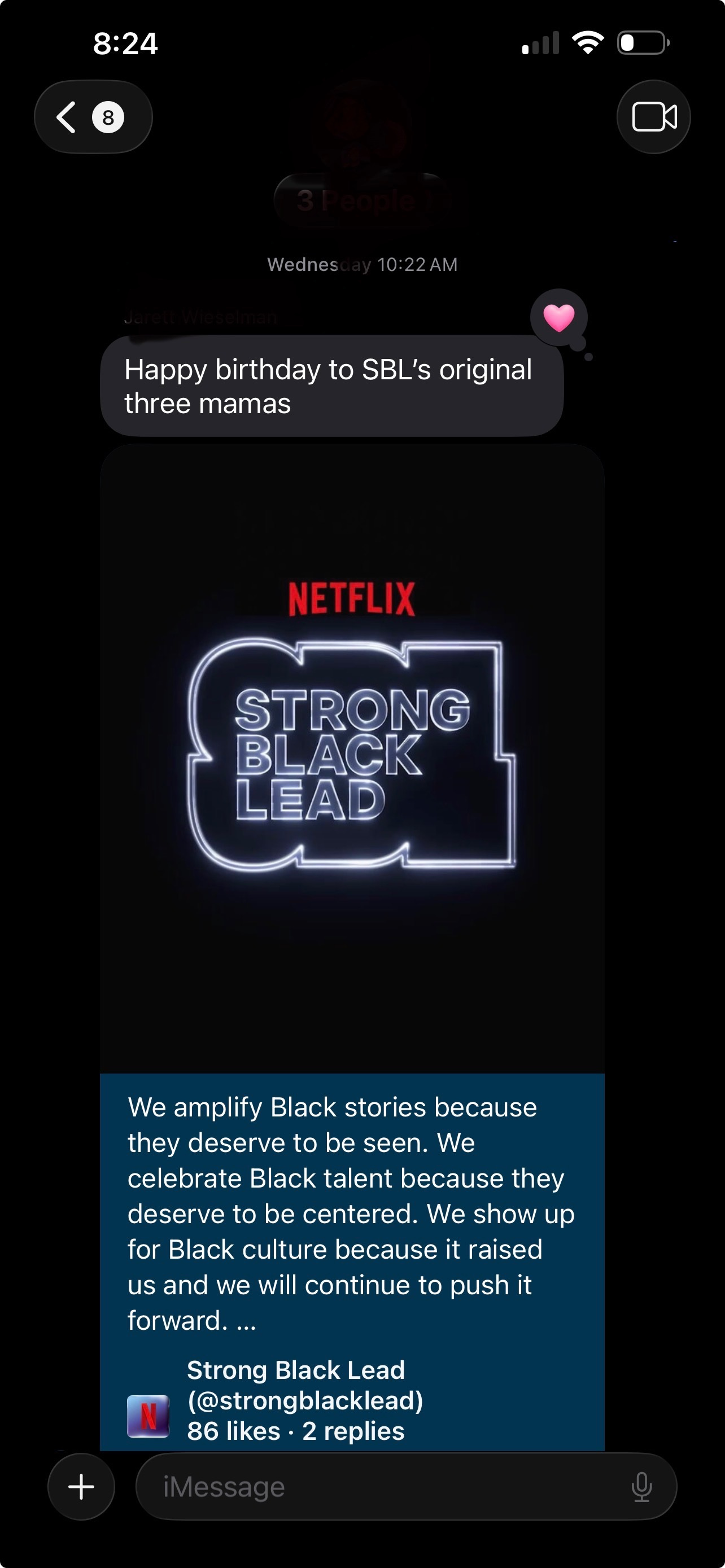 last week while I was napping (rest ethic is strong!), I woke up to a text from a former direct report at Netflix — someone still on the editorial team we built together. he sent me an image: Happy Birthday, Strong Black Lead. One of the many editorial channels we launched while I was there. eight years later and almost 7 million people strong.